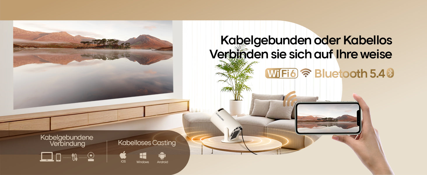 Original Magcubic HY300 Pro Projektor – gestochen scharfes Bild, 4K-Support & 180° Drehlinse. Perfekt für Schlafzimmer, Gaming & Filmnächte.